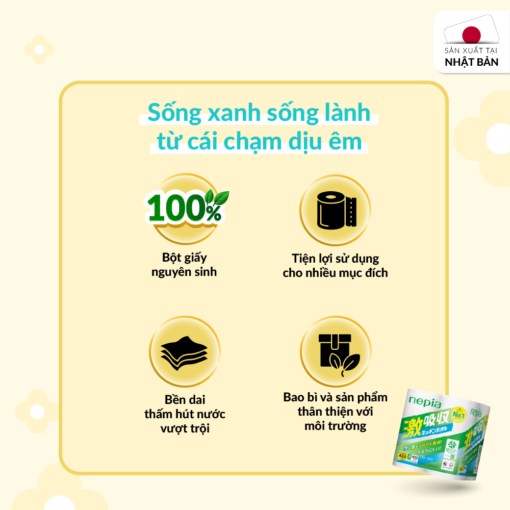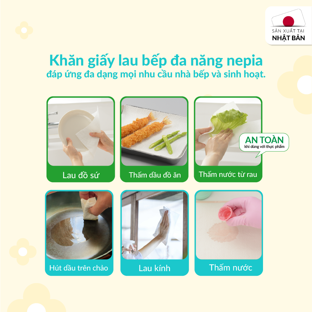 Không chỉ dùng được trong nhà bếp, khăn giấy lau bếp đa năng nepia còn đáp ứng nhiều nhu cầu trong sinh hoạt như lau dọn nhà cửa.
